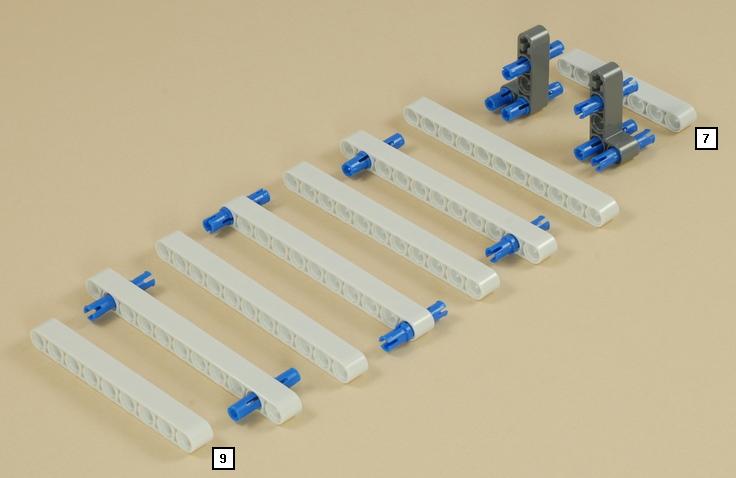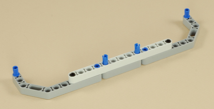 | Then connect the wire to port 1 on the NXT, then place the long blue peg and route the wire around it as shown below (this will be a tight fit). |