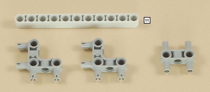 | Note: A number specified next to a beam or an axle, such as the "4" next to the axle above, refers to the length of the part in "modules", or holes. Make sure you choose parts of the correct lengths. To measure a beam, you can simply count its number of holes. To measure an axle, you can hold it up next to a beam and count its length in holes. |