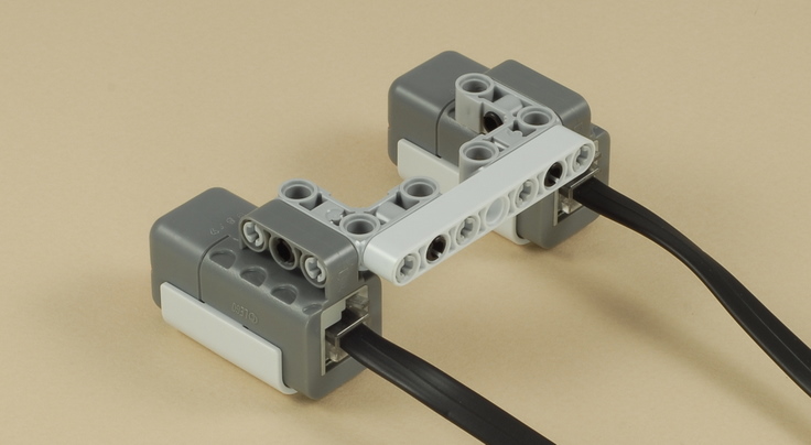 | The color sensor wire should come out of a gap under the center rear of the NXT. Connect it to port 3 on the NXT. |