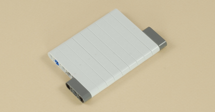 The steering motor wire should come out of a gap under the center front of the NXT. Wind the wire a couple of times to make it store compactly (it will be hidden behind the windshield built later) and then connect it to port A on the NXT. |
