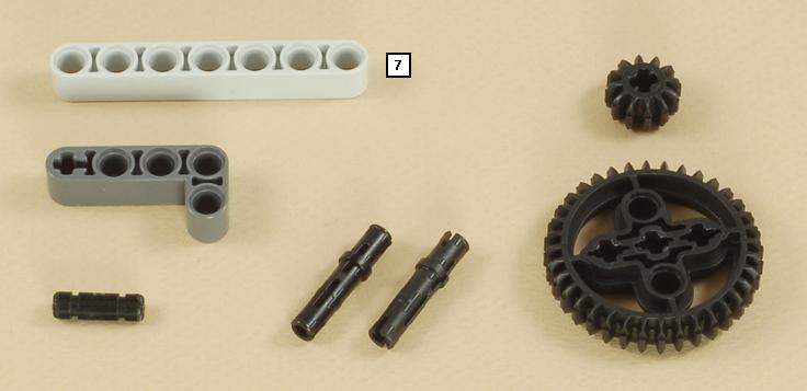 | Important: You will need to rotate the black bushed long peg (inserted in step 17) so that the axle hole is upright before the part shown below will insert into it. |