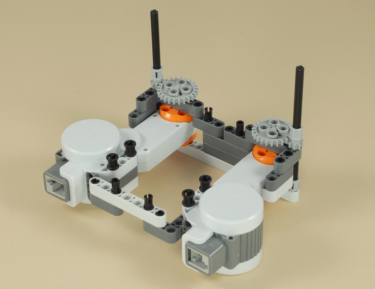 | Use the two longest wires to connect the two motors to ports B and C on the NXT as shown below (do not cross the wires). |