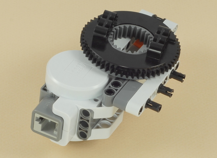 | The two brackets built in this step are used to attach the arm motor to the turntable base. You will need to attach one bracket first, then attach the arm motor, then attach the second bracket, as shown below. |